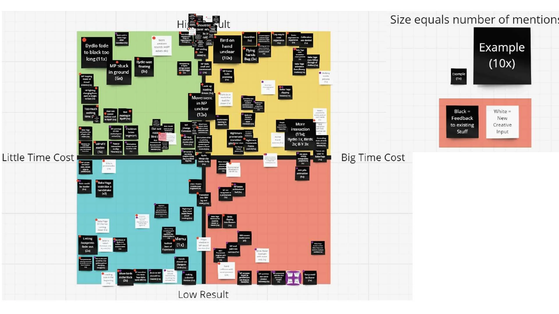 Iterated designs based on playtesting, improving comfort and narrative flow.